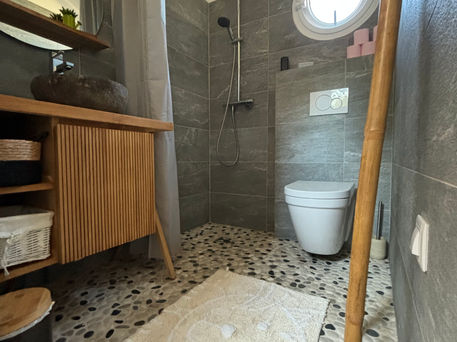 Au RDC, se trouvent deux chambres avec lit double et une SdB, à l'étage une chambre avec 2/3 lits simples et une chambre avec 2 lits simples, 2 SdB avec douche italienne.